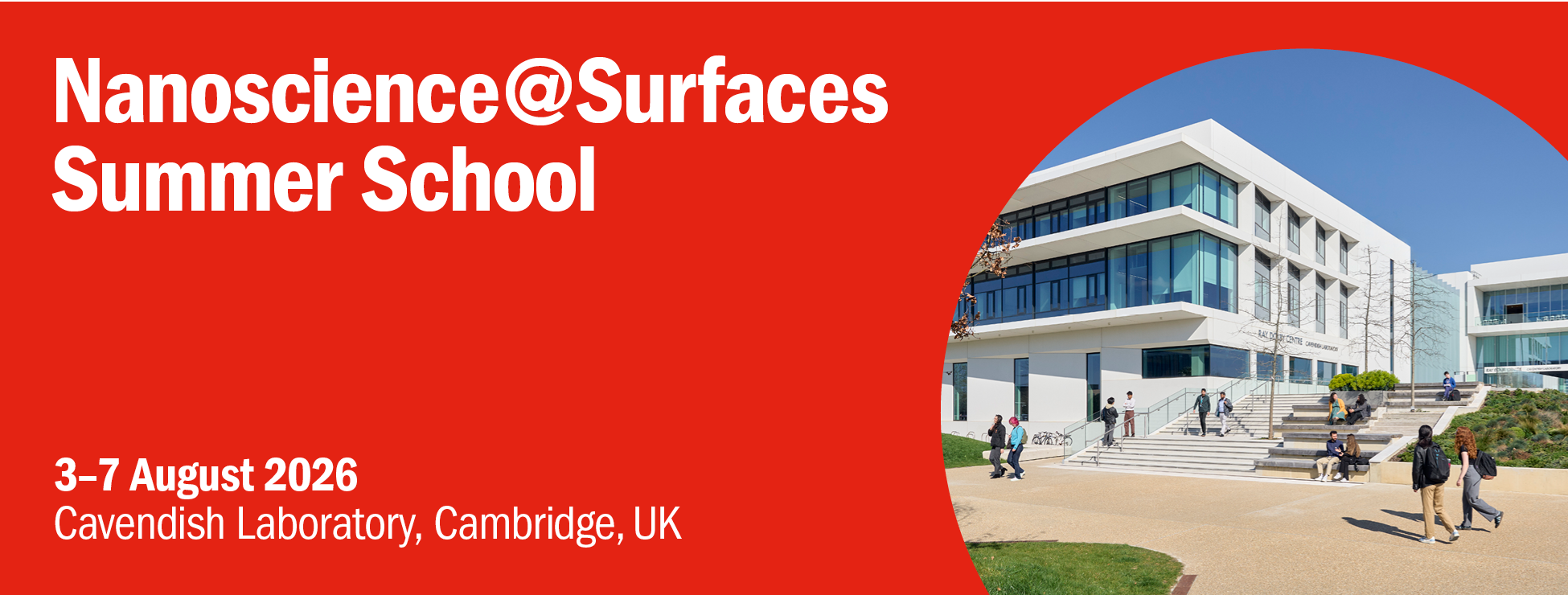 The Nanoscience@Surfaces Summer School 2026 will offer a comprehensive introduction to the techniques and applications in surface science, with a particular emphasis on understanding and engineering surfaces at the nanoscale. Participants will explore a broad suite of experimental and theoretical methods, including scanning probe techniques, electron and optical spectroscopy, diffraction-based approaches to surface structure, and computational modelling of surfaces and adsorption processes. Equal emphasis will be placed on talks and hands‑on workshops, giving participants the valuable opportunity to put their newly acquired knowledge into immediate practice. The programme will also feature a poster session with an associated prize, as well as a conference dinner at one of the Cambridge colleges.